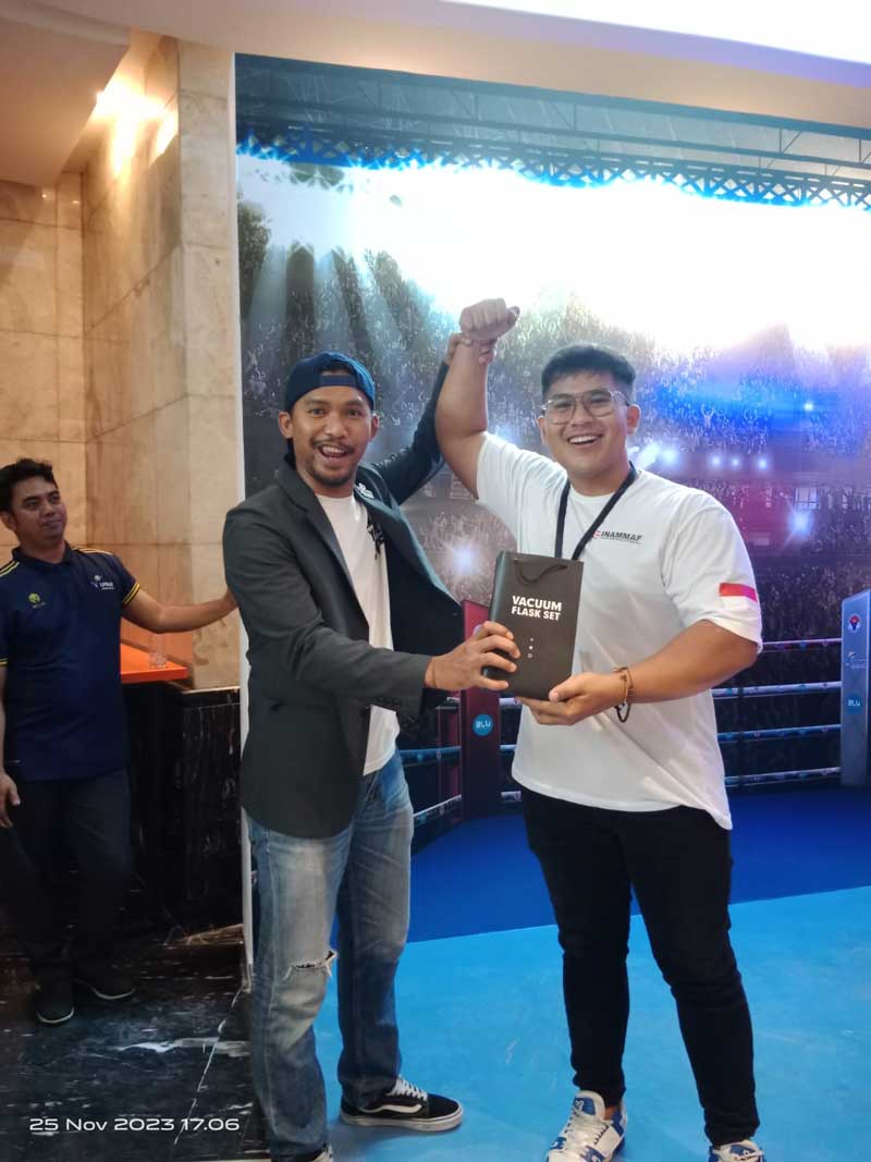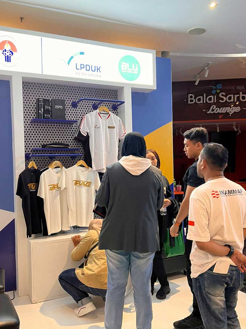 LPDUK ikut memeriahkan event Brave FC 76 di Balai Sarbini, Jakarta, Sabtu 25 November 2023. LPDUK menghadirkan Booth, selain jualan jersey juga menghadirkan game adu kuat pukulan berhadiah souvenir.