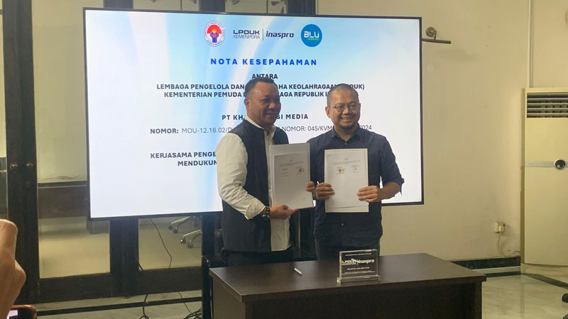 LPDUK – Guna mendukung berbagai kegiatan atau kalender event yang padat sekaligus memproyeksikan potensi penerimaan negara bukan pajak (PNBP) dari bidang keolahragaan pada 2025, Badan Layanan Umum (BLU) Lembaga Pengelola Dana dan Usaha Keolahragaan (LPDUK) menandatangani lima Nota Kesapahaman (Memorandum of Understanding/MoU) dan satu Perjanjian Kerjasama (PKS) dengan mitra.