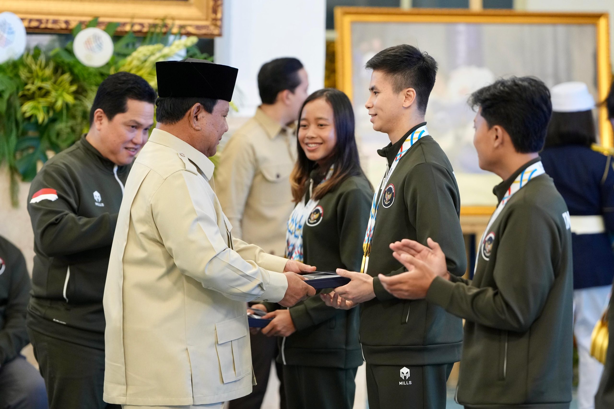 Jakarta – Presiden Prabowo Subianto mengundang para peraih medali SEA Games 2025 memenuhi Istana Negara Jakarta, Kamis (8/1) sore, untuk memberikan penghargaan berupa bonus kepada para putra terbaik yang telah mempersembahkan 91 emas, 111 perak dan 131 perunggu. Presiden Prabowo bangga dan mengucapkan terima kasih kepada para atlet dan pelatih yang telah menunjukkan kedigdayaan Indonesia di pentas olahraga Asia Tenggara.