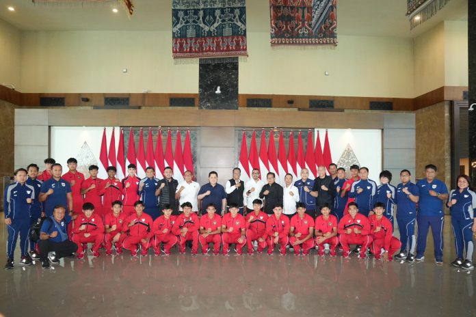 Alberto Hengga dkk tiba di terminal kedatangan Gedung VIP Bandara Soekarno Hatta, Tangerang, Banten. Kedatangan Garuda Muda disambut hangat Ketua Umum PSSI Erick Thohir bersama Menteri Hukum Supratman Andi Agtas, Kamis (13/11) pagi. Foto: X/erickthohir